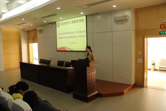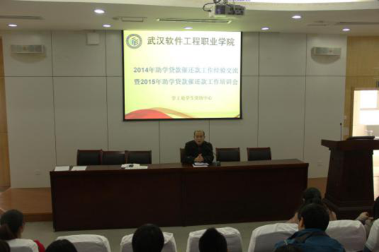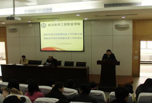 2015年3月12日上午9点,在武汉软件工程职业学院学术报告厅3号厅召开了2014年生源地助学贷款催还款工作经验交流暨2015年助学贷款催还款工作培训会,会议由校学工处学生资助中心主任王继锋主持,参加会议人员为2011级辅导员和2012级毕业生全体辅导员。