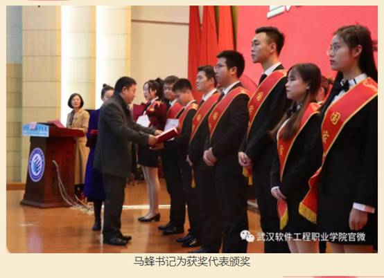 马蜂书记、刘前信校长分别为获奖学生代表颁发荣誉证书。“国家奖学金”获奖代表罗佰安、“国家励志奖学金”获奖代表曾令丹、“先进班集体”获奖代表工网1801班王鑫、“三好学生”代表徐慧慧、“优秀学生干部”代表王晨阳等同学发表获奖感言。